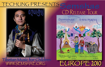记得2010年,Techung发行了准备多年的新专辑《Semshae-Heart Songs》,是专门为孩子们创作的16首儿歌。在接受自由亚洲藏语节目的采访时,Techung自述创作缘由在于他的女儿们,生长在美国,渐渐美国化,而他希望女儿们从小不忘自己是藏人,故乡在图伯特。所以他拨动扎念,让孩子们跟他一起唱“祖拉康里有可以朝觐的,祖拉康里有可以磕头的,我们一起去祖拉康吧……”,让孩子们唱“阿妈啦,你关爱我的话,教给我藏语吧……”。
