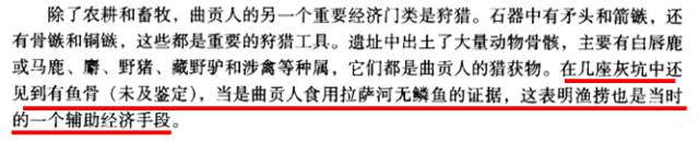 位于拉萨北郊的曲贡新石器时代遗址的灰坑(古人的生活垃圾坑),也曾发现过曲贡居民享用鱼肉之后留下的鱼骨。 其他早期遗迹也有类似发现。
