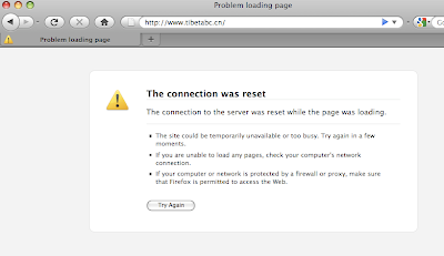 Update #1, January 20, 2010: Blogsites http://www.cmbod.cn/index.html and http://www.tibet123.com/bbs/ are back online. http://www.tibettl.com is still down.