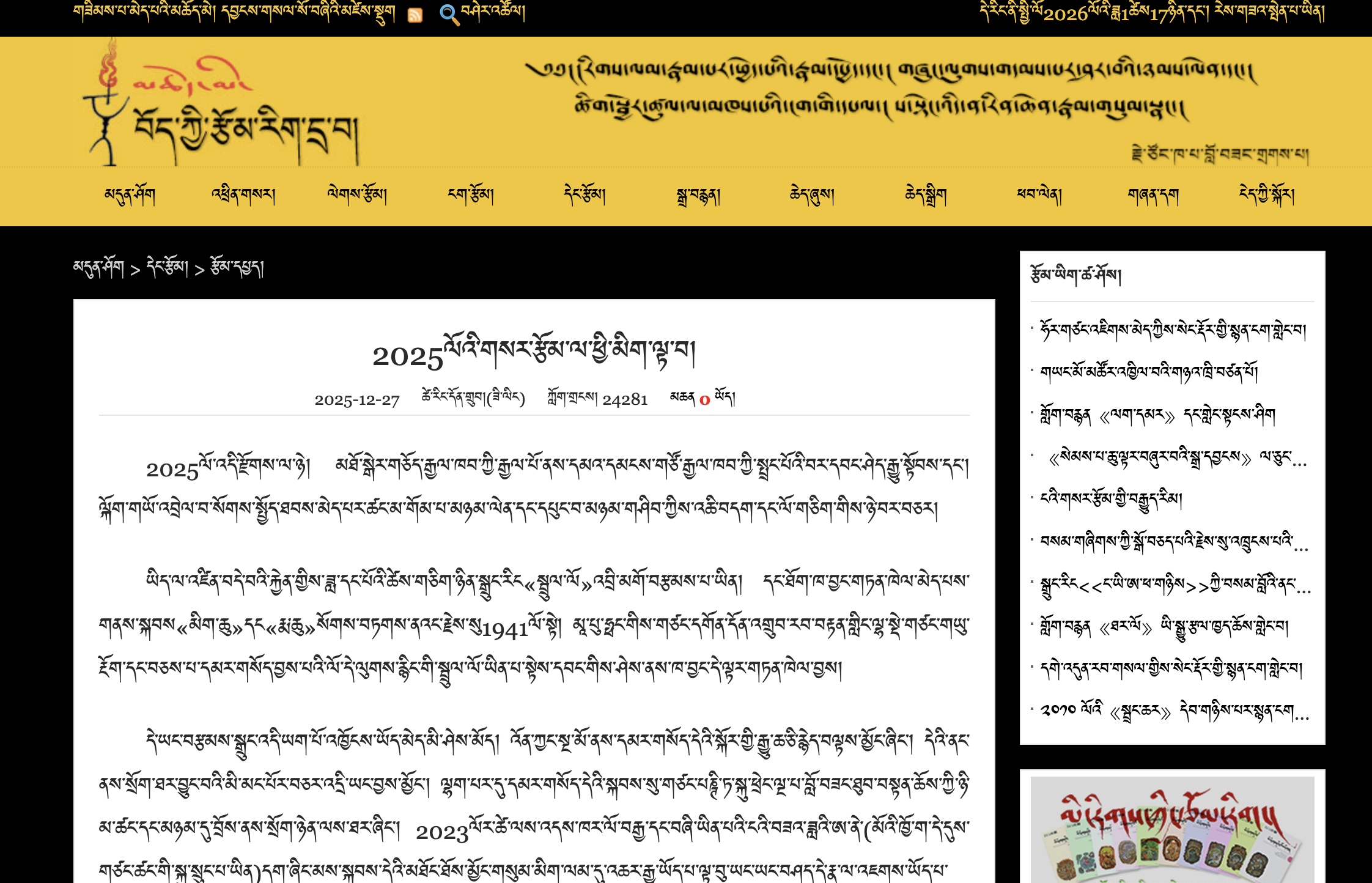2025 12 27 Looking Back on 2025 on January 20, 2026 More: “Looking Back on 2025’s New Writings” By Tsering Döndrup January 22, 2026 “Ocean, As Much As Rain: Stories, Lyrical Prose, and Poems from Tibet” By Tsering Woeser Available for Preorder November 13, 2025 High Peaks Pure Earth Spring 2025 Tibet Reading List March 13, 2025